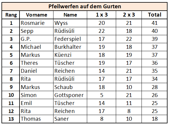 Das traditionelle Pfeilewerfen gewann Rosmarie