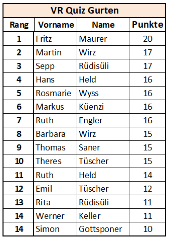 Gewinn des Quiz und jetzt noch Erster im